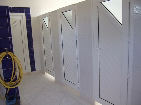 -3 showers with a large changing space and coat racks which should avoid you getting dressed on one foot.